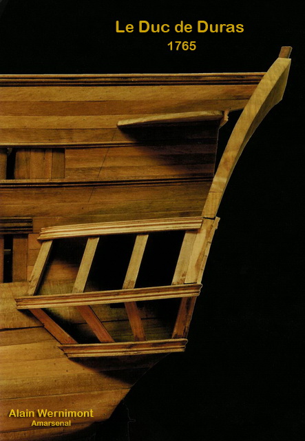 Outre les plans de la monographie donnant le volume du tableau et des bouteilles en détaillant les contours extérieurs de cette charpente, l'étude de la poupe du 74 canon de Jean Boudriot ainsi que du traité de construction de Vial du Clairbois aident grandement à la compréhension de cette charpente relativement fragile, Cette étape a permis l'extraction des différents gabarits des soles, des plate bandes d'appui latéral des fenêtres et des termes formant la partie basse et latérale du cintre ainsi que de la charpente du balcon qui n'est pas détaillé sur cette vue.