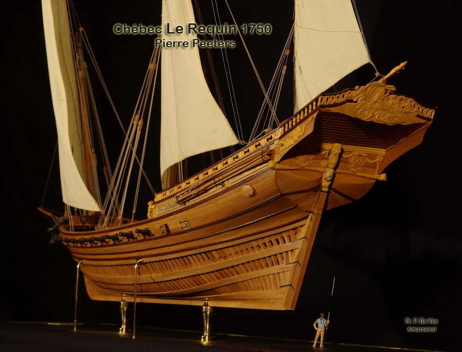 Le monogramme royal (deux « L » entrecroisés) est bien visible sur la mèche du gouvernail. La figure barbue coiffe cette dernière et englobe la barre du gouvernail par une mortaise pratiquée dans la bouche du personnage.