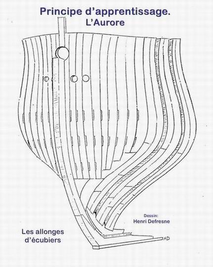 L‘objectif étant de résoudre progressivement les difficultés rencontrées dans la réalisation d’une charpente d’arsenal, l’Aurore de 280 Tonneaux a été choisie comme navire de démonstration pour la réalisation des diverses pièces d’épreuve.*¹, *² .
